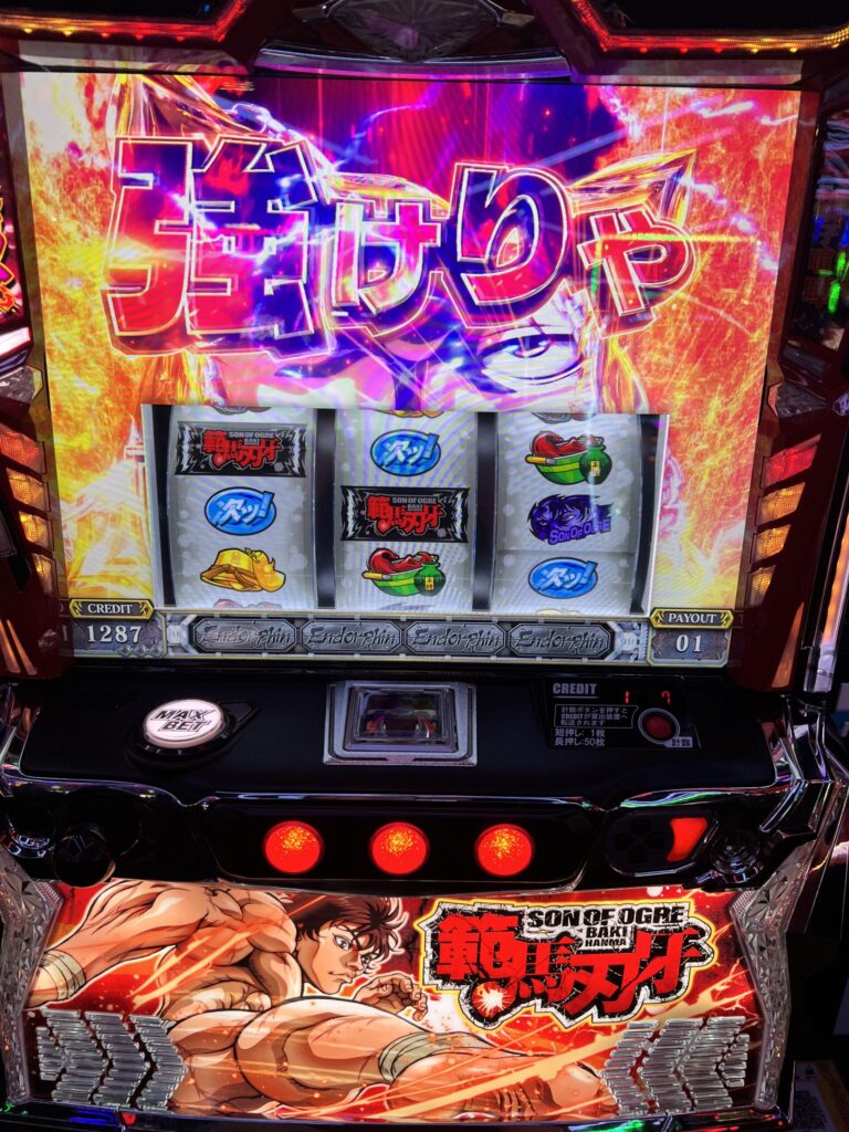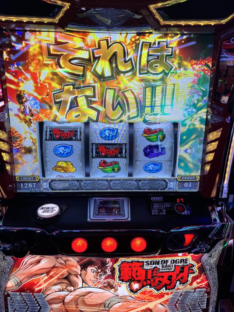 『範馬刃牙』は通常時200G以内に当たる確率が75%以上あるそうなので、仕事終わりの一勝負にはピッタリかもしれません。