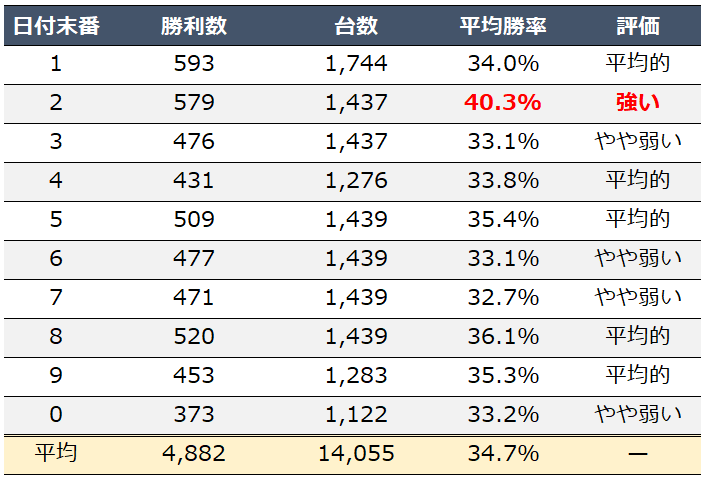 - 勝率・差枚ともに注目できる末番あり